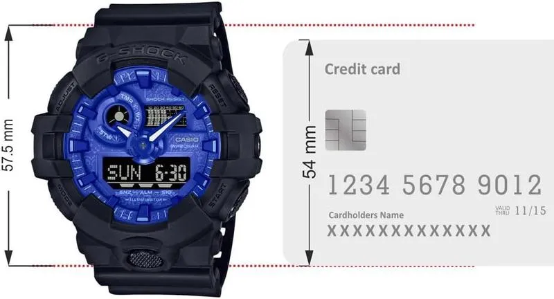 ساعة كاسيو جي-شوك رجالية بمينا أزرق بتصميم بايزلي موديل: GA-700BP-1ADR