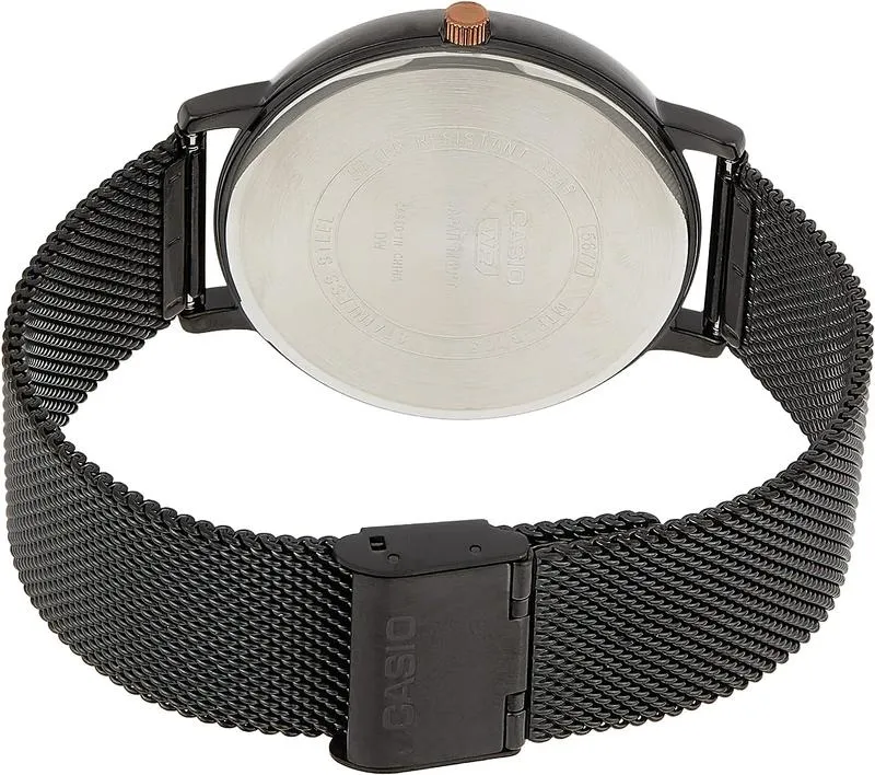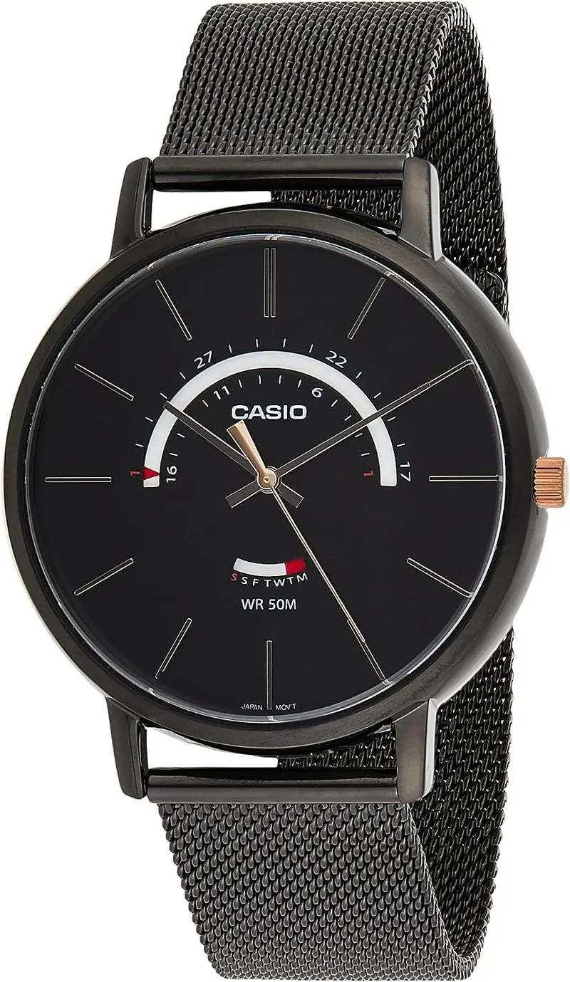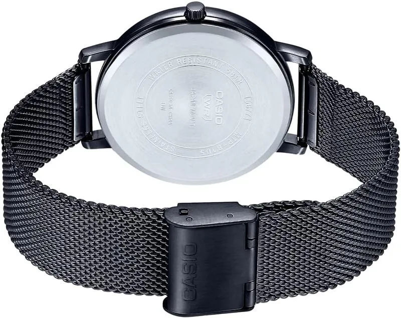 ساعة كاسيو رجالية بمينا أسود وسوار معدني موديل: MTP-B105MB-1AVDF