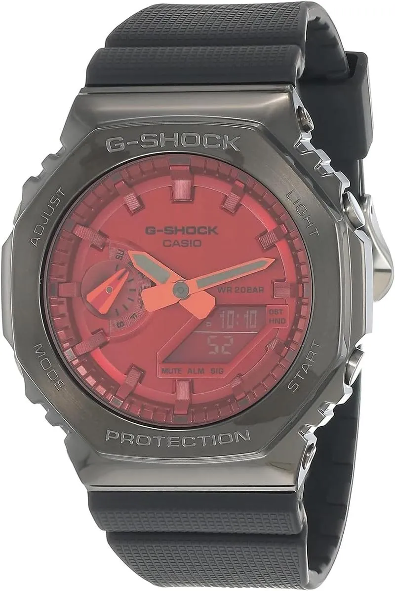 ساعة جي-شوك GM-2100B-4ADR أنالوج رقمية بإطار معدني أحمر للرجال