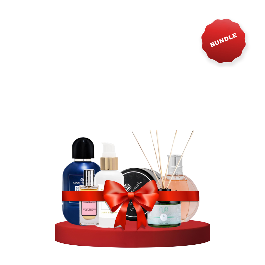 ليون هيكتور تشينج فيوتشر أو دو بارفان للرجال 100 مل + ديزي لا بلانك أونلي ونس أو دو بارفان للنساء 100 مل + نوي لوشن للجسم "جست بي يو" للنساء 80 جرام + نوي سينكو دو مايو معطر أعواد 100 مل + لوي بريتون سيكريت إلوجن أو دو بارفان للنساء 30 مل + بخور ورد العرب ليبا 40 جرام