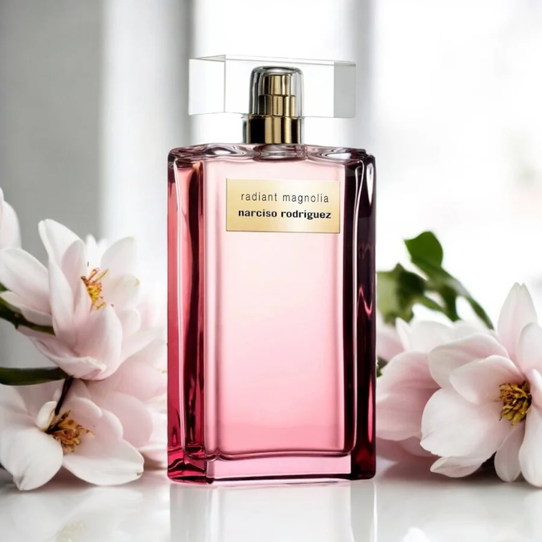 عطر نارسيسو رودريغيز راديانت ماغنوليا أو دو بارفان من نارسيسو رودريغيز، يتميز بمقدمة منعشة ودافئة من البرغموت، الأمبريت، ولمسة خفيفة من الزنجبيل، يحتوي قلب العطر مزيجاً من زهرة الماغنوليا، الورد، ومسك نارسيسو المميز، ترتكز القاعدة على الأوسمانثوس وخشب الأكيغالا.