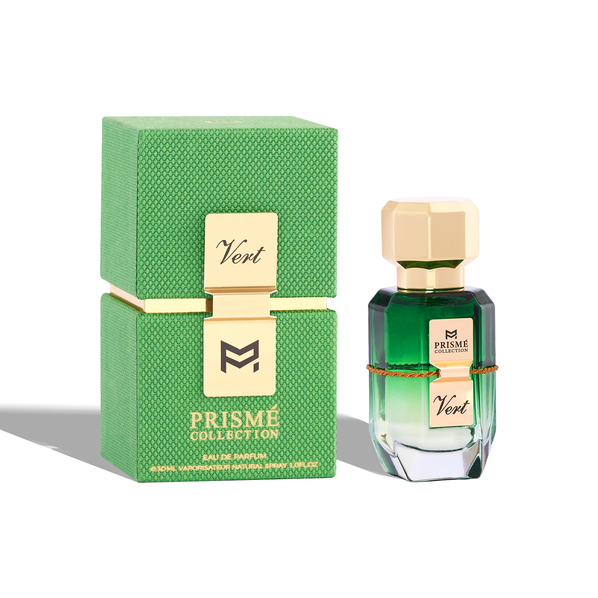 Prisme Vert Eau de Parfum (EDP) by Patek Maison opens with tangerine, lemon, and pink pepper. The heart of the scent reveals fig, jasmine, and damask rose. The fragrance settles into sandalwood, saffron, white musk, and agarwood.