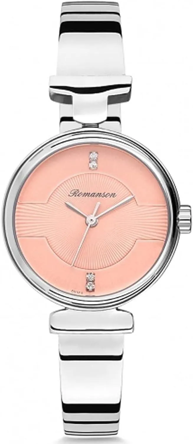 ساعة يد رومانسون نسائية تناظرية بسوار ستانلس ستيل مقاومة للماء، موديل RM6A05LLWWAPR1، باللون الفضي والخوخي، سويسرية الصنع