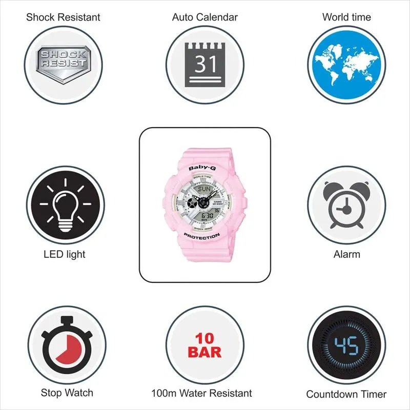 Casio Baby-G Womens Quartz Watch, Analog-Digital Display and Resin Strap BA-110BE-4ADR