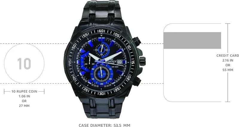 Casio EdifICE Men Black Dial Ion Plated Stainless Steel Watch
