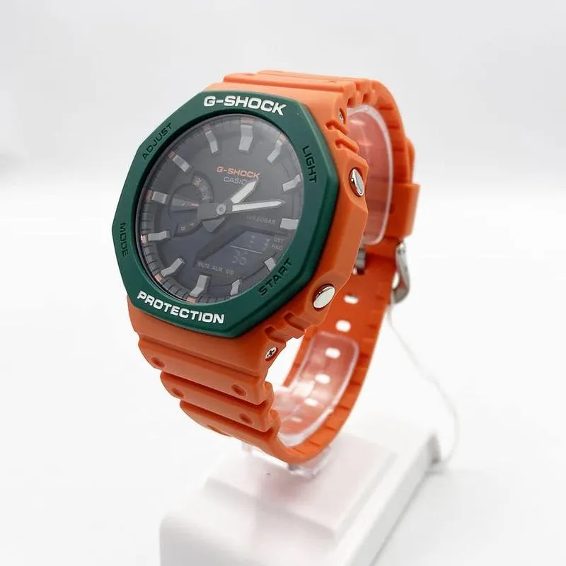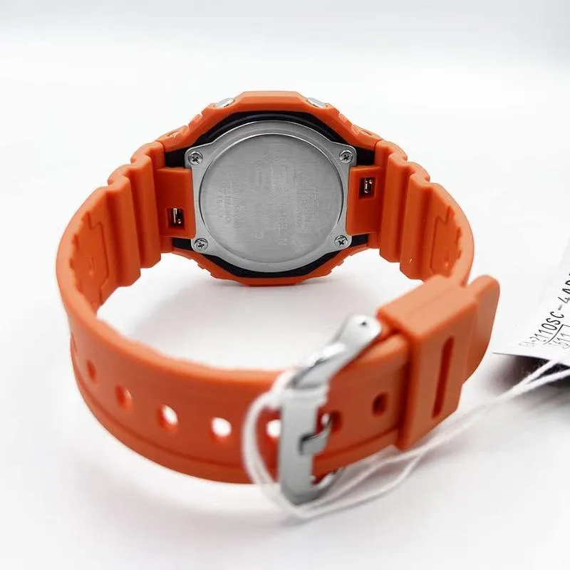 Casio Unisex WATCH G-Shock Analog Digital Two Tone Bezel Black Dial Resin Band GA-2110SC-4ADR, Orange, strap