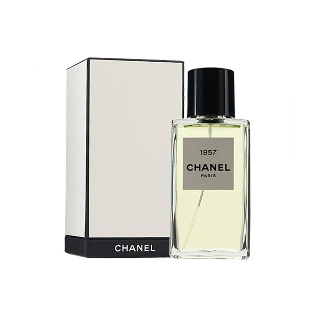 1957 Eau de Parfum by Chanel opens with white musk, aldehydes, bergamot, pink pepper, and coriander. The heart reveals white musk, orange blossom, and jasmine, while the base settles into white musk, orris, cashmeran, cedar, honey, and vanilla, creating a luxurious and aromatic unisex fragrance.