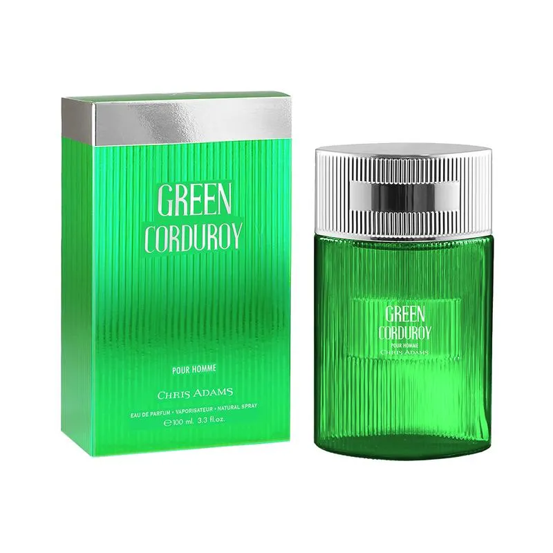 Green Corduroy Is A Fresh Woody Masculine Fragrance With Hints Of Fruity And Floral Notes. Top Notes Of Apple And Raspberry Fruit Notes Are Enriched With Heart Notes Of Lavender, Jasmine, And Heliotrope. A Base Of Ambergris And Creamy Sandalwood Gives The Scent Its Signature Warmth While Patchouli Leaves It Dry And Woody. The Scent Is Held In A Green-Toned Bottle With A Silver Coated Crown, Enclosed In A Green-Hued Paper Box With Silver Accents.
