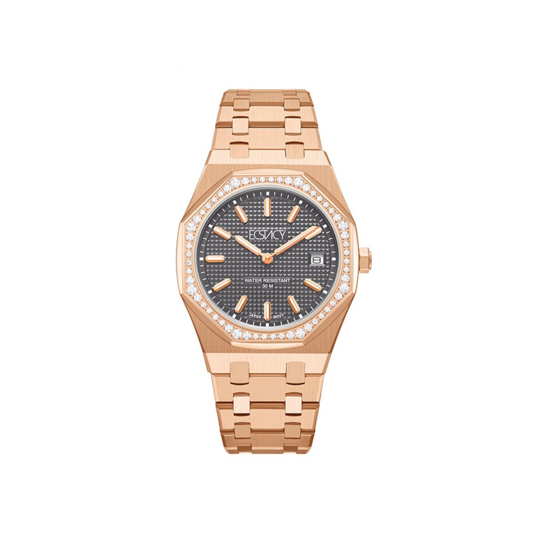 The Ecstacy E24503 RBKX combines modern elegance with understated style. Its muted grey dial contrasts beautifully with a rose gold-tone bracelet, creating a refined accessory suitable for any occasion. This analog watch offers timeless charm, perfect for enhancing both casual and formal looks with a touch of sophistication.