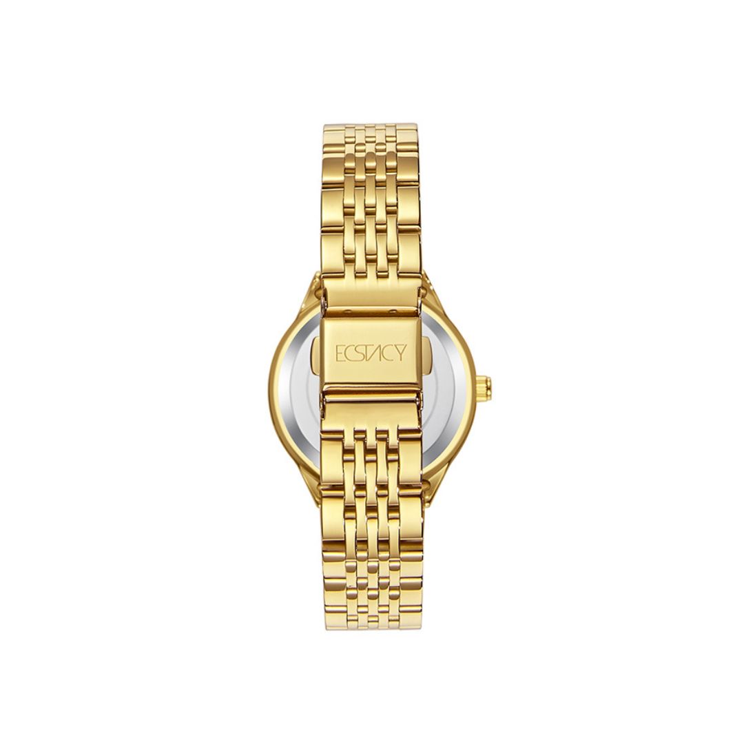 The Ecstacy E23517 GBGS is a classic women’s analog watch with a silver dial and a gold-tone bracelet.