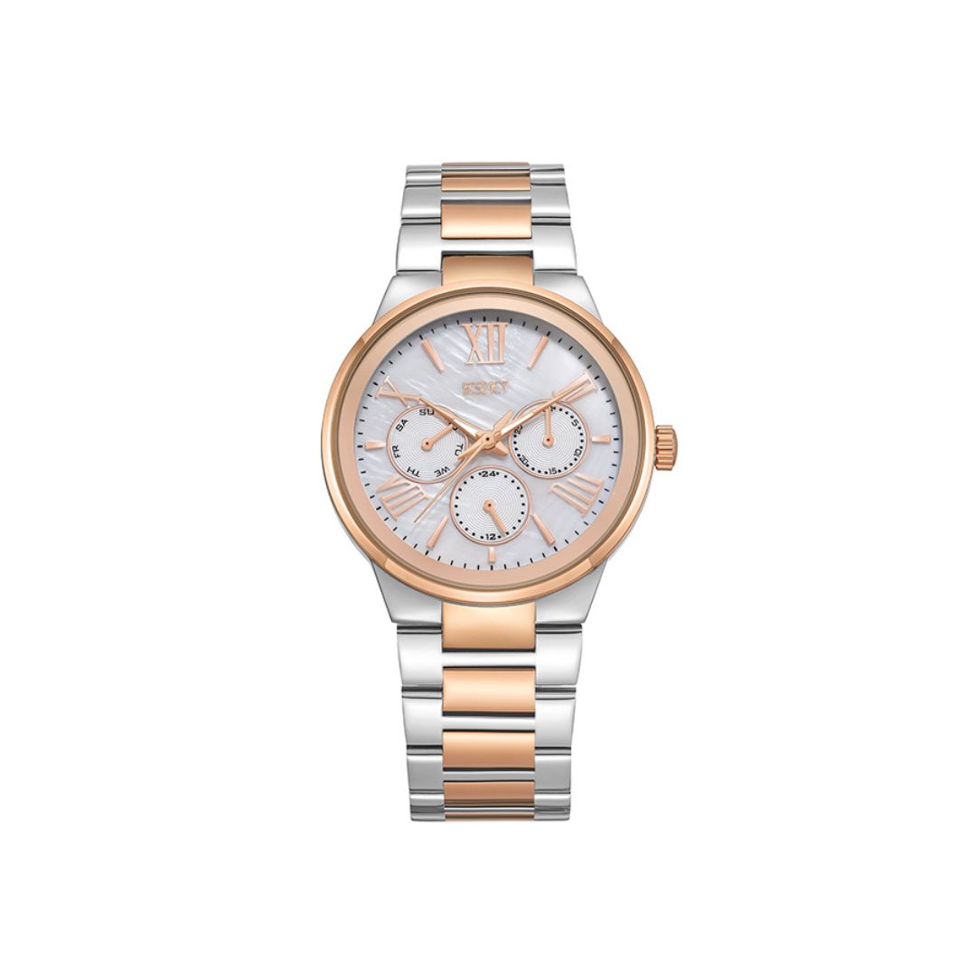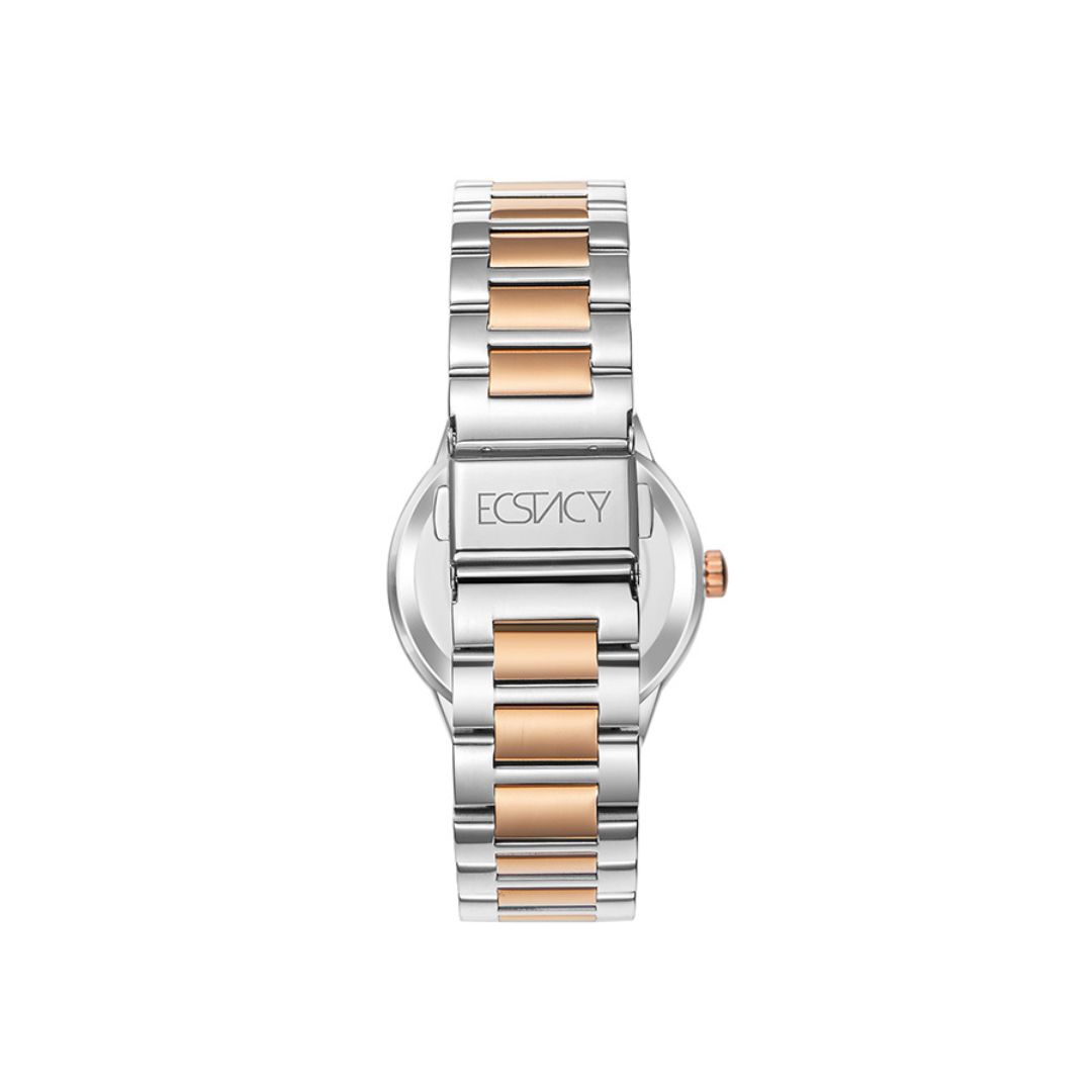 The Ecstacy E23613 KBKM blends elegance and practicality with its luminous mother-of-pearl dial and multifunction features including date, stopwatch, and alarm. Paired with a classic black leather strap, this analog-digital watch is perfect for women who want sophistication and functionality in one stylish accessory.