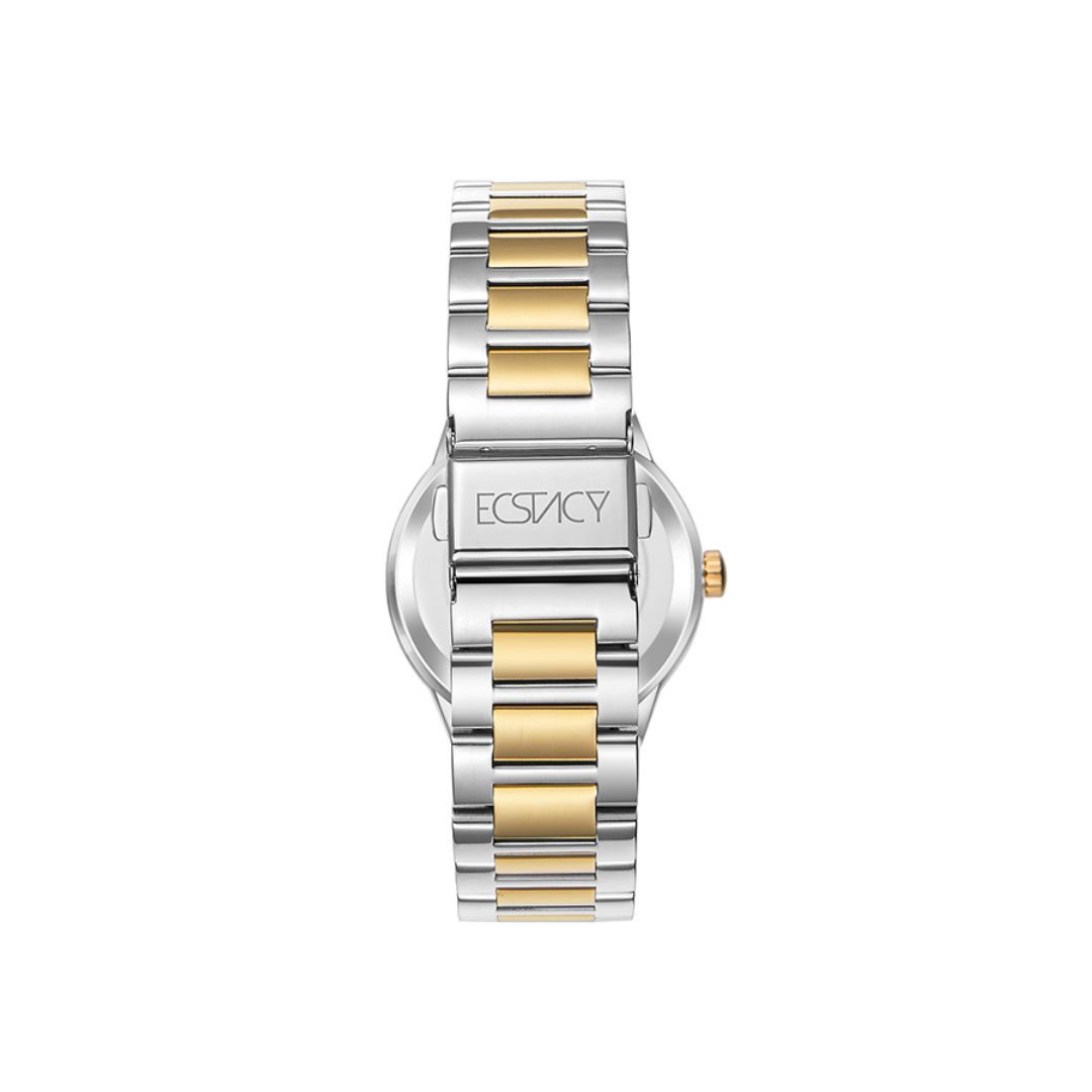 The Ecstacy E23613 TBTM is a multifunction women’s watch featuring a mother-of-pearl dial and silver-tone bracelet.
