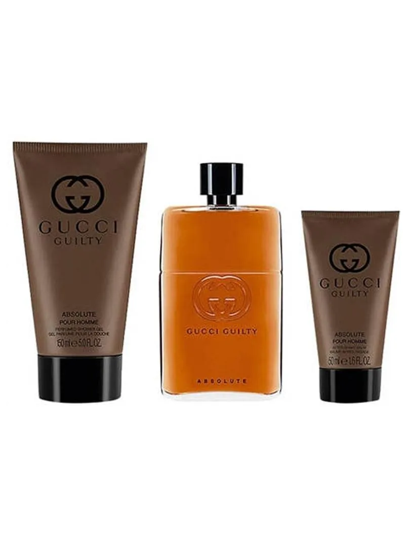 Gucci Guilty Absolute Eau De Parfum 90ml + Gucci After Shave Balm 50ml + Gucci Shampoo 50ml set.