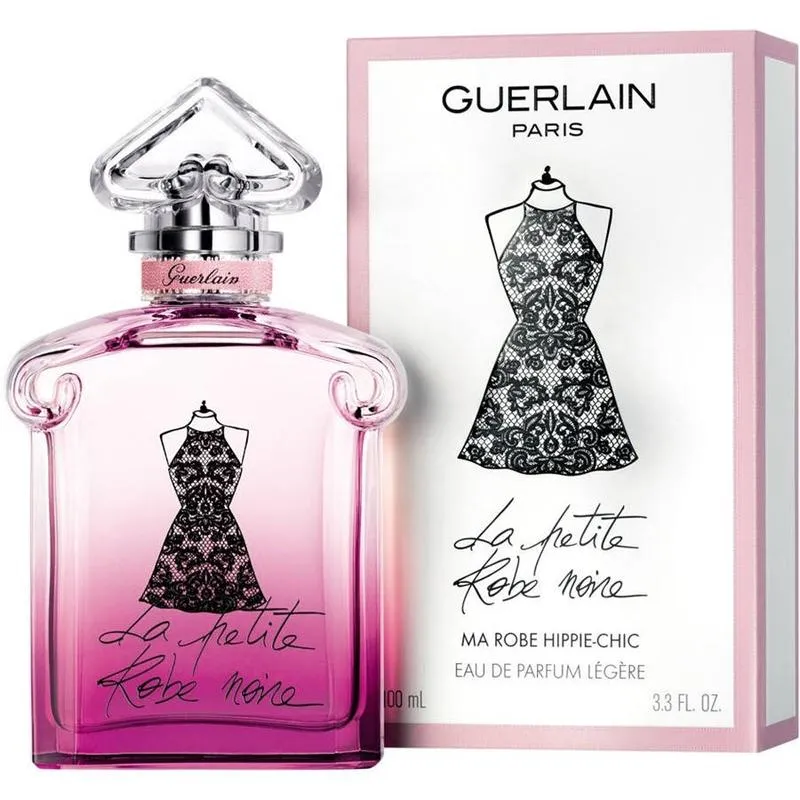 FRAGRANCE DESCRIPTION: La Petite Robe Noire Ma Robe Hippie-Chic perfume for Women by Guerlain was released in 2018 is an aroma highlighted by a bouquet of fragrant sweet, bitter and fresh scented tones that will bring a sensual, uplifting and fresh perfumed sensation. The fragrance is based on the combination of notes Guerlain La Petite Robe Noire Ma Robe Hippie-Chic is classified as Floral Fresh fragrance to the nose. The fragrance composition is a creation of Thierry Wasser. The beginning of flavors and scent notes for La Petite Robe Noire Ma Robe Hippie-Chic unfold in a scent of floral and fruity opening top notes including rose and cherry. The floral and gourmand heart center notes blend in with rose and almond while the deep green and spice base notes leave an impression of tea, tonka bean and patchouli.
