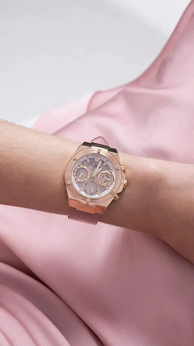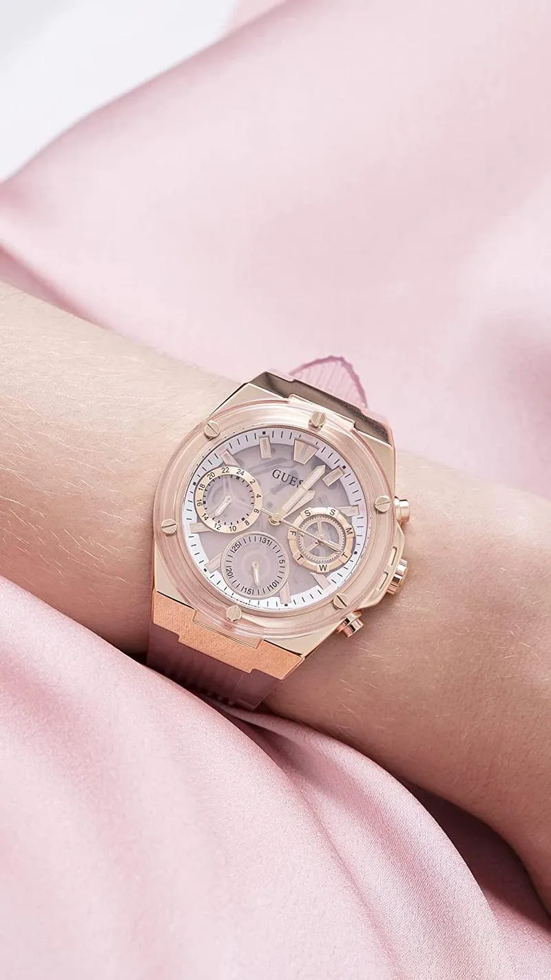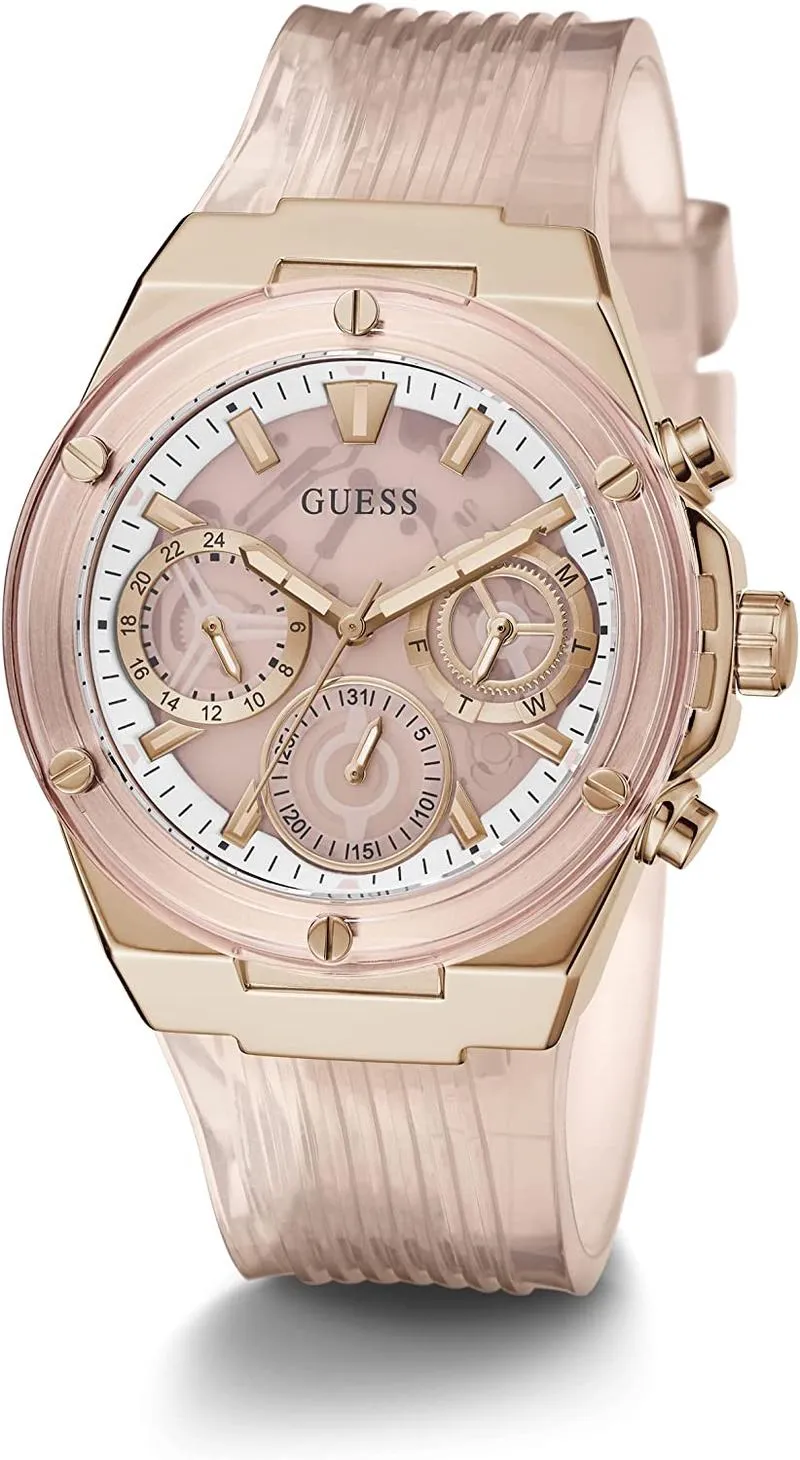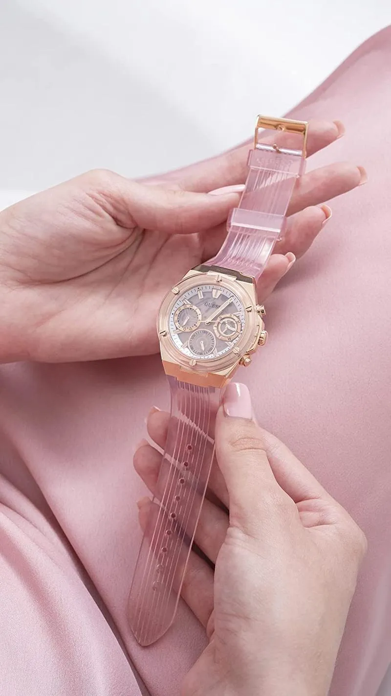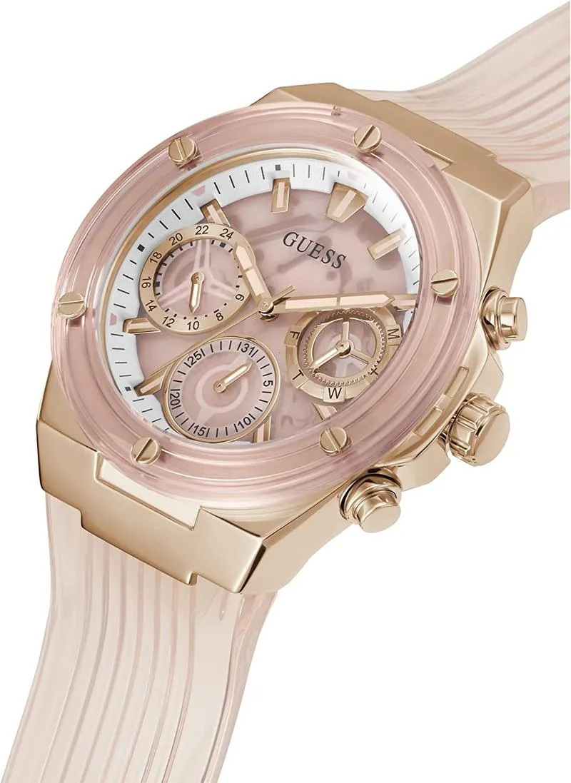 GUESS Ladies Sport Clear 39mm Watch, Pink/Rose Gold-Tone, one