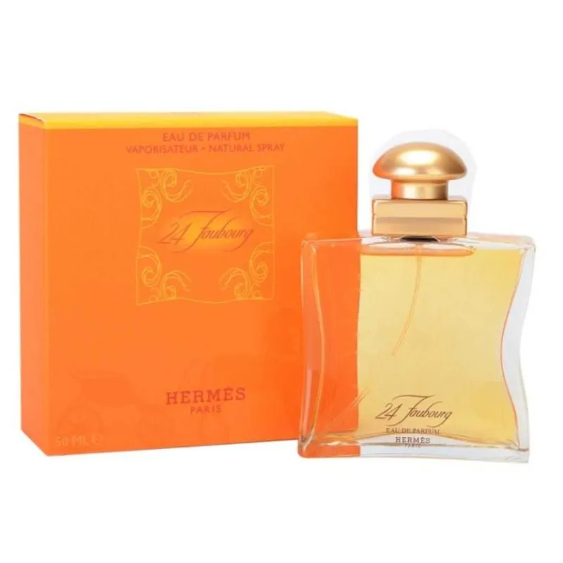 FRAGRANCE DESCRIPTION: 24 Faubourg Perfume by Hermes is a sharp, light and bright floral perfume for women composed by Maurice Roucel. Released in 1995, this timeless fragrance evokes the breezy, sensual quality of exotic travel and sunny destinations. It opens with sparkling white floral top notes that seamlessly blend with a mysterious heart of powdery iris and wood. Rich bottom notes of animalistic ambergris and sweet vanilla round out this distinctly feminine olfactory journey.