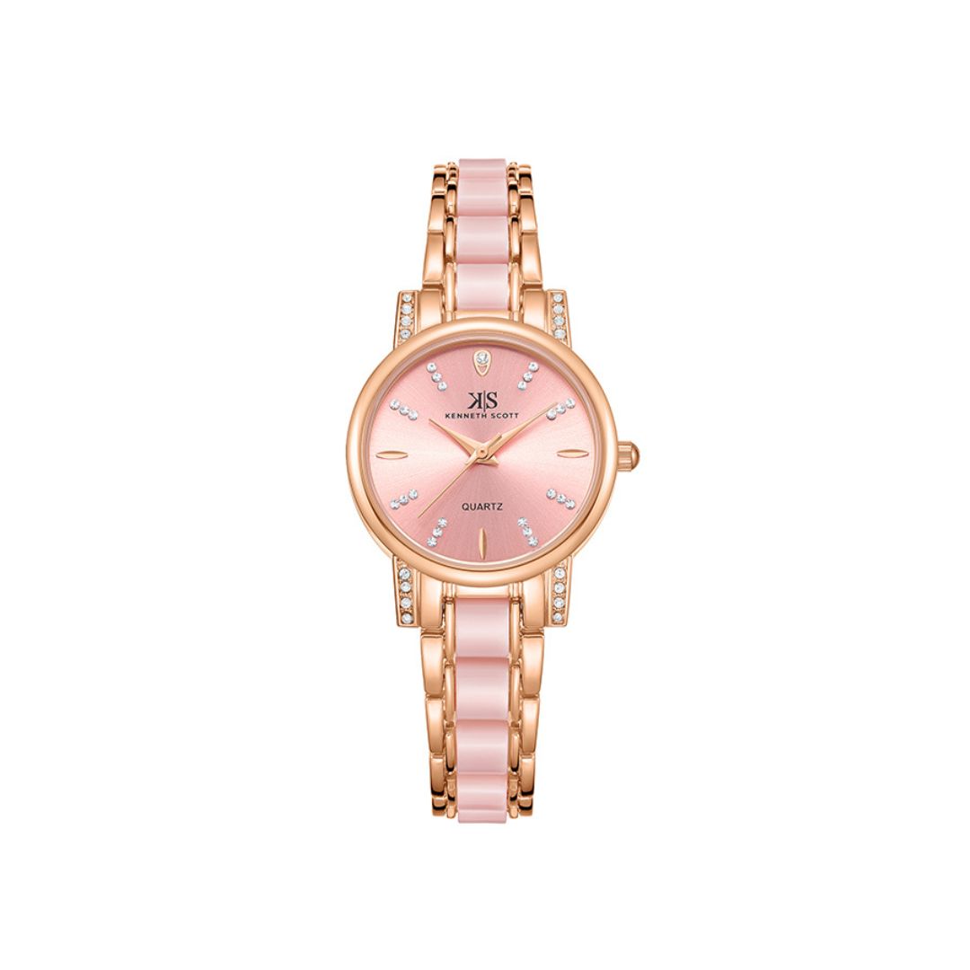 Kenneth Scott K23547 KCPP showcases a delicate pink dial with simple markers, designed for feminine style and everyday wear. This analog watch combines reliable quartz movement with a comfortable strap, making it ideal for casual outings or formal events. A charming accessory for any woman’s collection.