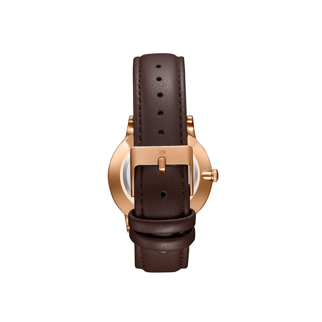 The Kenneth Scott K23040 RLDW blends timeless charm with a crisp white dial and a radiant rose gold case.