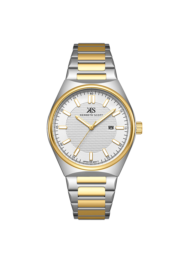 The Kenneth Scott K24016 TBTW combines a classic white dial with two-tone elegance for a sharp, refined wrist presence.