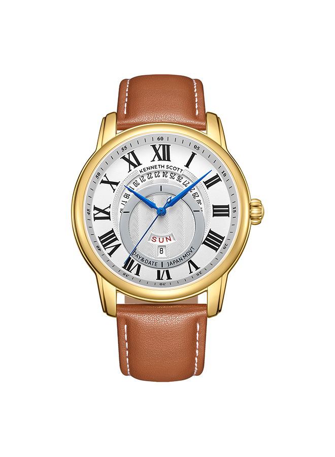Kenneth Scott K24020 GLEW combines timeless elegance with modern simplicity. The clean white dial pairs seamlessly with a gold-tone strap, making it a refined accessory for any occasion. Crafted for comfort and durability, this analog watch reflects effortless style and is an ideal pick for work, events, or everyday wear.