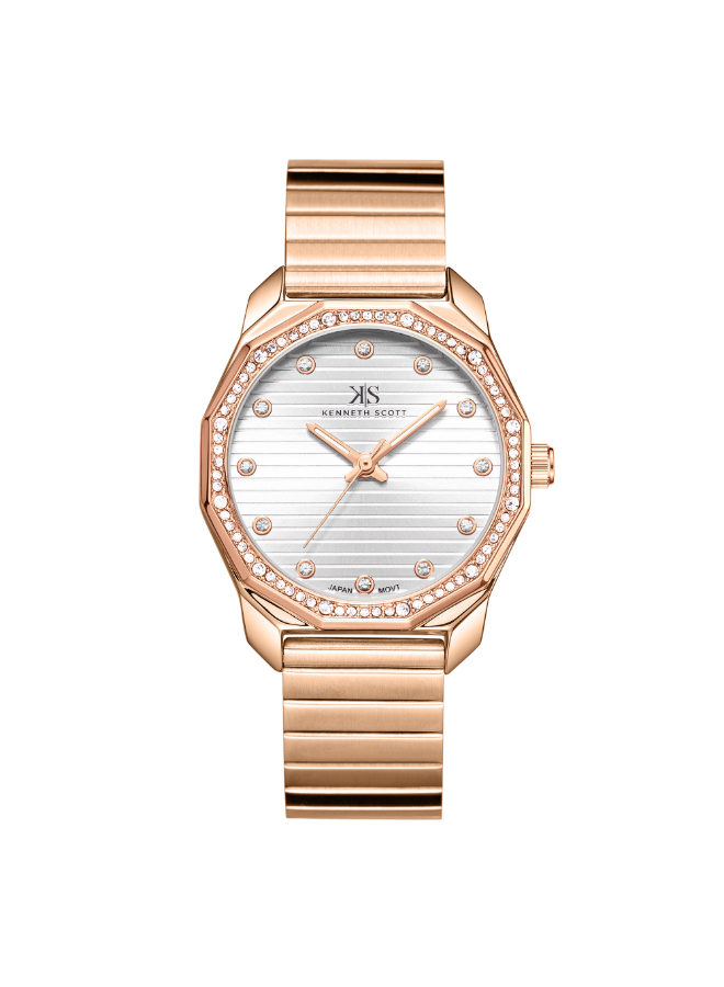 Kenneth Scott K24505 RBKW offers a clean white dial with minimalist markers, designed for women who appreciate simplicity and style. This analog watch combines precise quartz movement with a comfortable strap, making it ideal for everyday wear or formal occasions. A versatile and elegant wrist accessory.