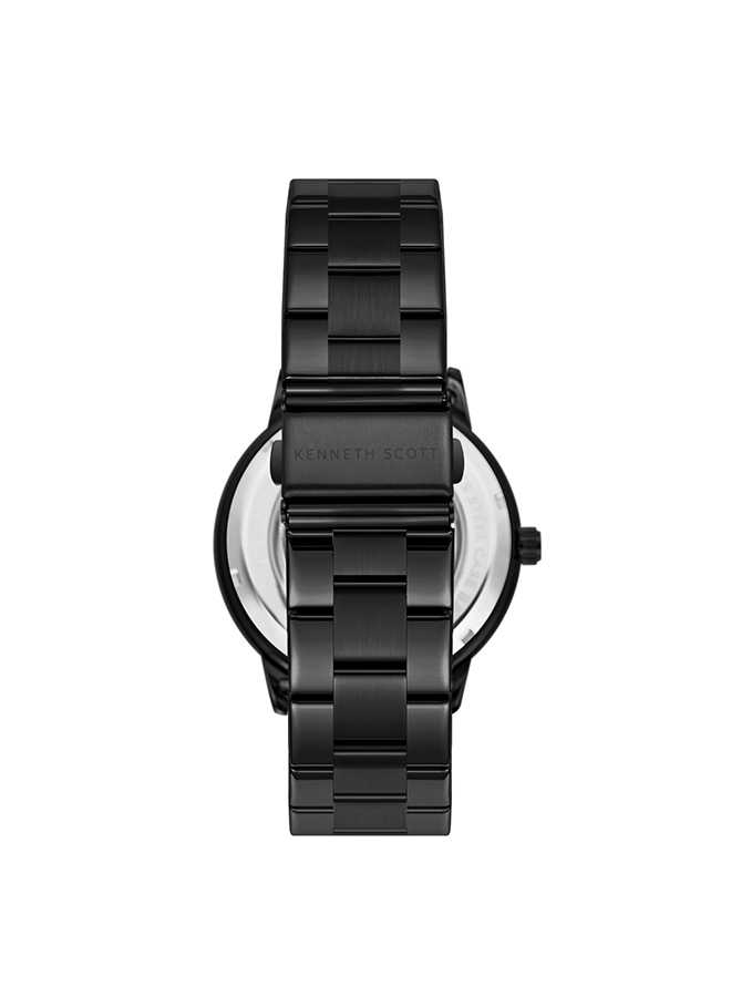 The Kenneth Scott K24324 BBBB features an automatic movement with a sleek black dial and matching black strap.