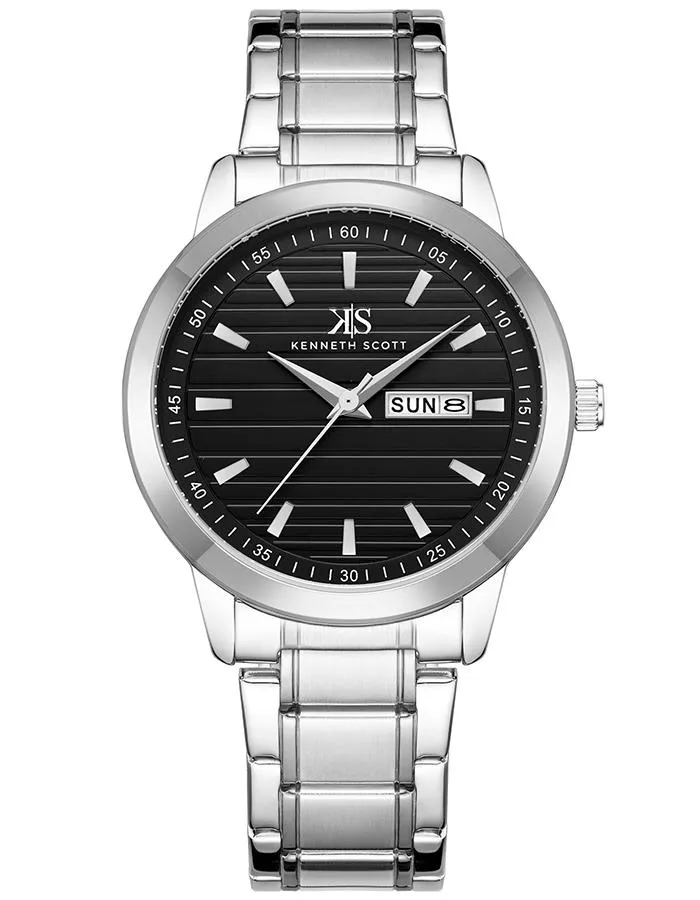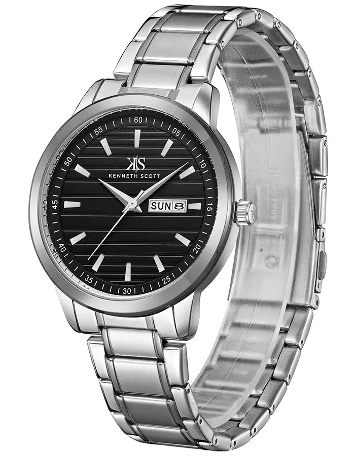 Kenneth Scott Men's Black Dial Analog Watch - K22027-SBSB