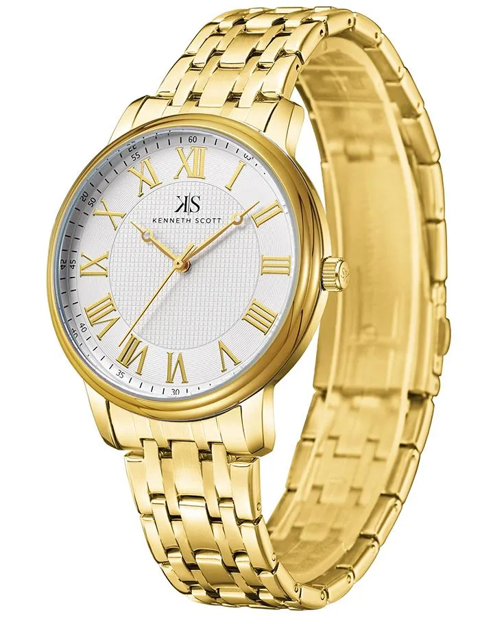Kenneth Scott Men's White Dial Analog Watch - K22029-GBGW