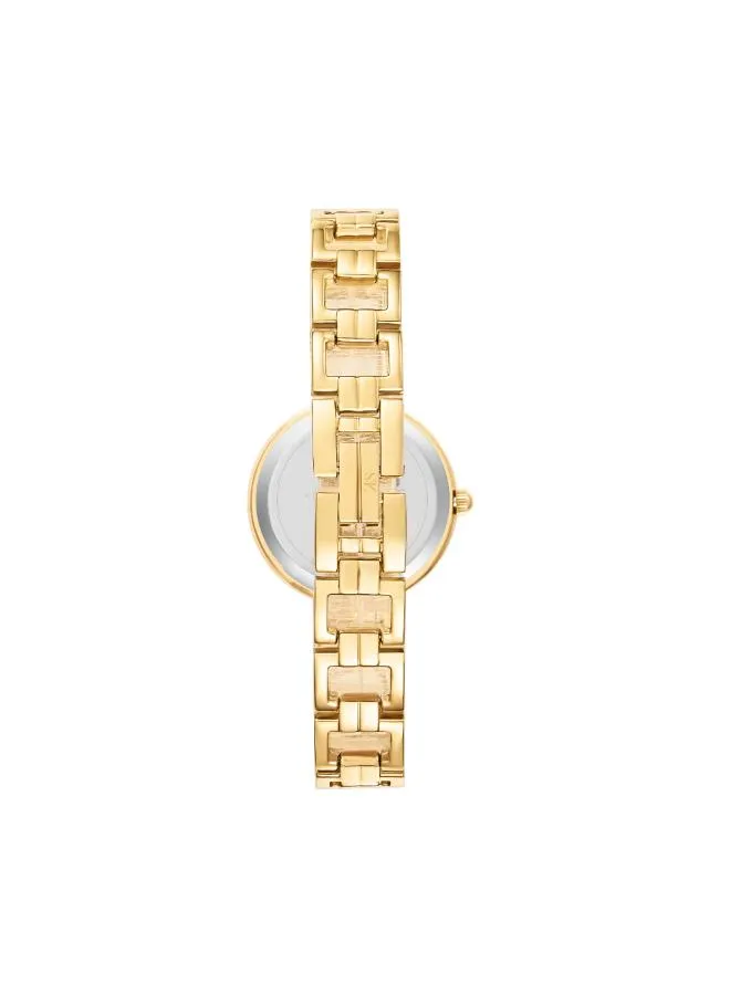 Round Alloy Gold case with Analog display, White dial 28mm case diameter, PC21 movement, 3 ATM water-resistant Gold Alloy bracelet with Jewelry Buckle