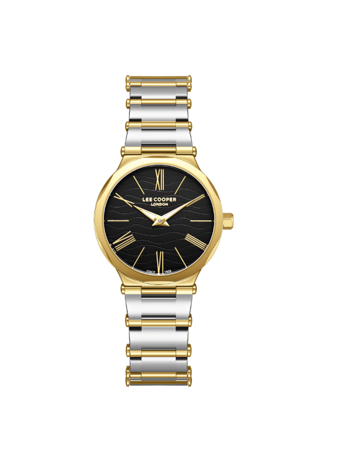 Lee Cooper Analog Watch LC08000.550 for Women presents a sophisticated black dial paired with minimalist markers for a contemporary edge. This versatile watch is perfect for both day and night wear, offering elegance with a modern twist. Designed for confident women who prefer timeless design with a bold presence.