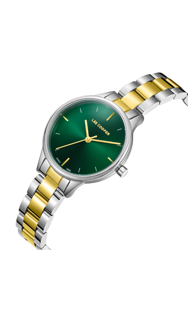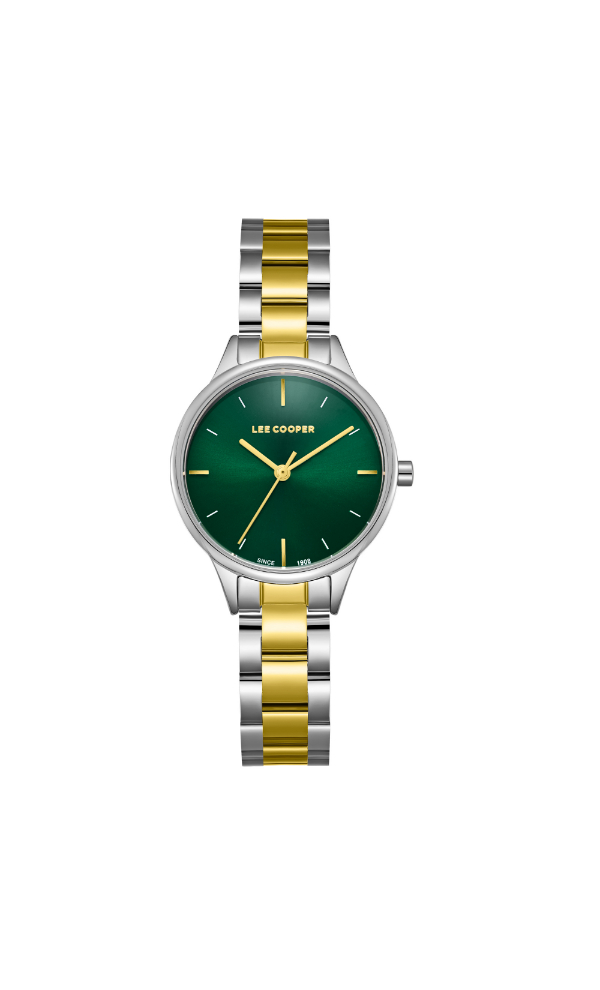 The Lee Cooper LC08080.270 women’s watch features a rich dark green dial with contemporary elegance and minimalist appeal.