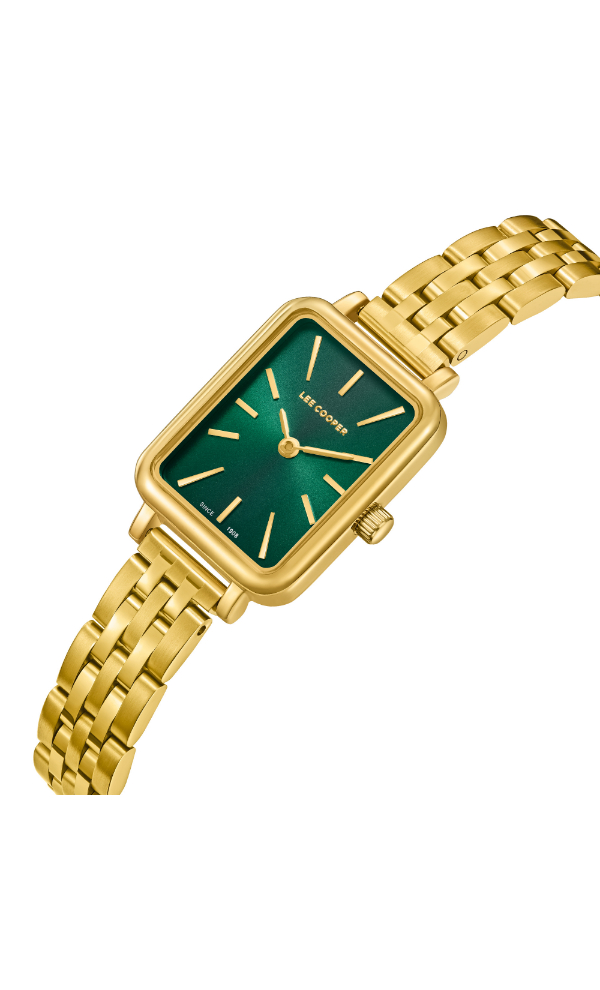 Lee Cooper Analog Watch LC08121.170 showcases a gold dial with clear markers, housed in a sleek case. Powered by quartz movement, it offers reliable timekeeping for daily wear. This watch combines subtle luxury with practical style, making it suitable for both casual and formal occasions.