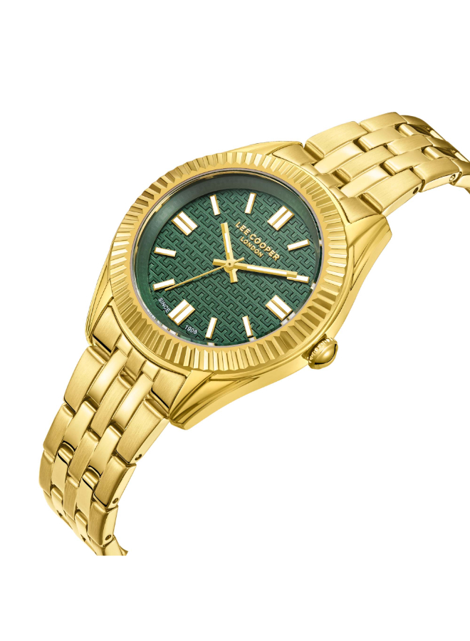 Lee Cooper Analog Watch LC08038.170 for Women brings together a vivid green dial and clean layout for a neat, wearable finish. Built for daily use, this watch adds a subtle pop of colour without overwhelming your style. A dependable pick that blends utility with bold charm.