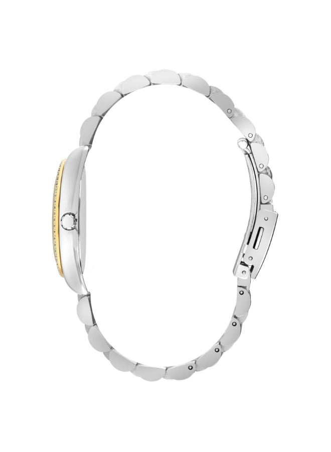 The Lee Cooper LC07478.220 features a sleek silver dial with a minimalist design, perfect for women seeking subtle style.
