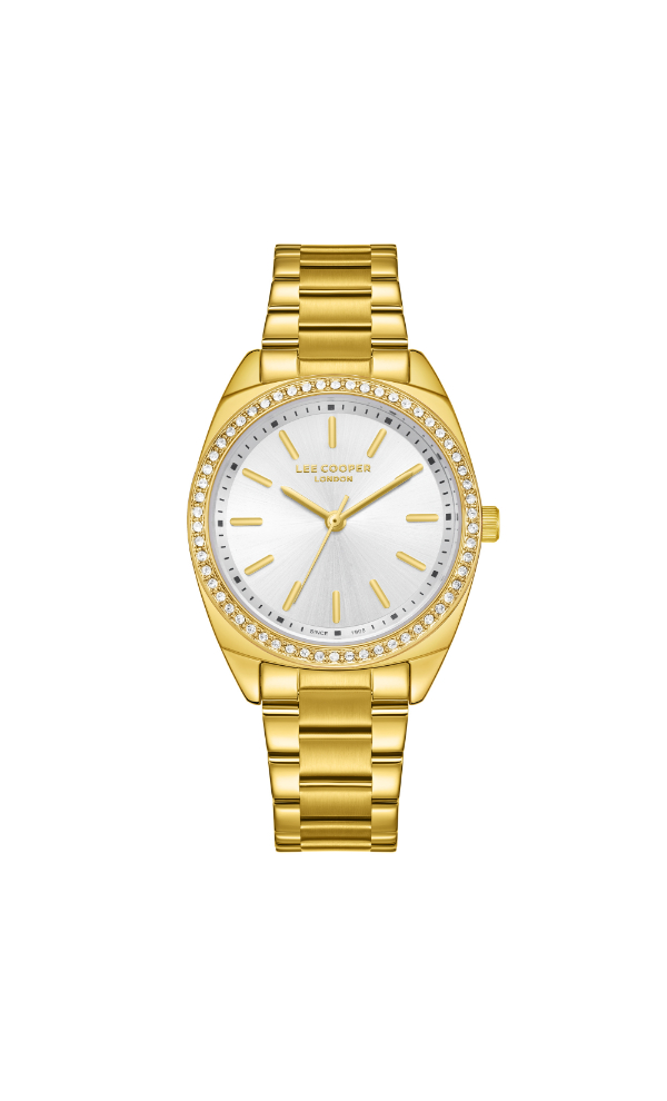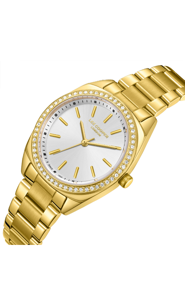 The Lee Cooper LC08041.130 features a polished silver dial, offering a stylish and versatile watch option for women.