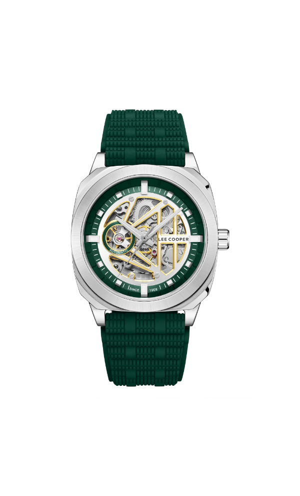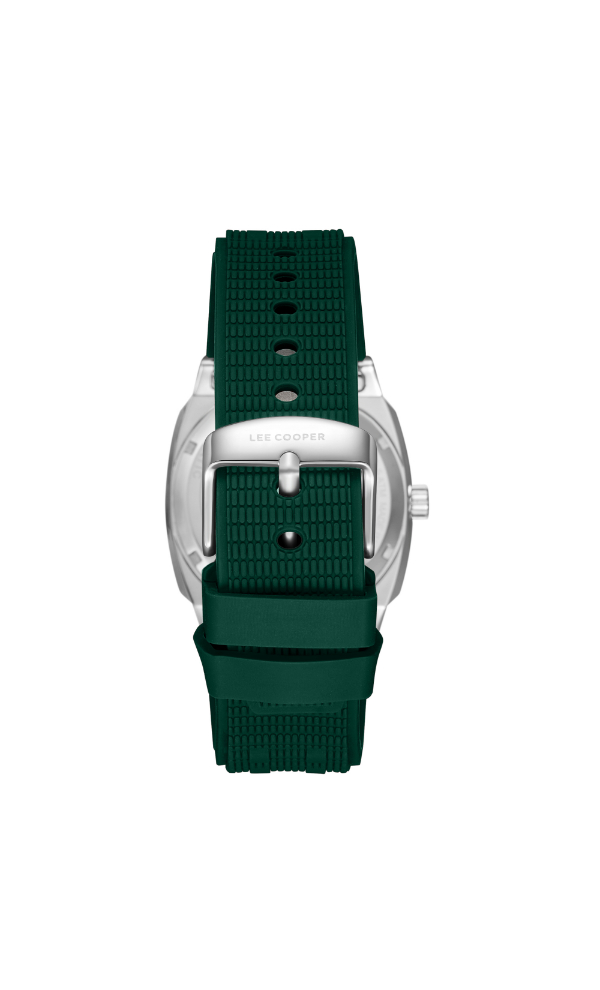 The Lee Cooper LC08074.377 Automatic Watch features a dark green dial housed in a sturdy case with a comfortable strap. Powered by automatic movement, it offers reliable timekeeping without the need for batteries. Suitable for daily wear, this watch complements both casual and professional styles.