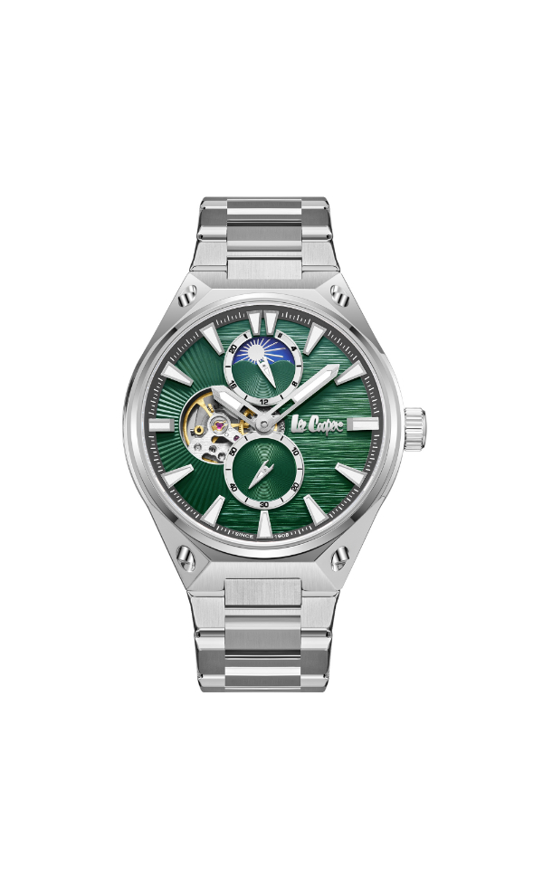 The Lee Cooper LC08123.370 is a men’s automatic watch featuring a dark green dial with precise mechanical movement.
