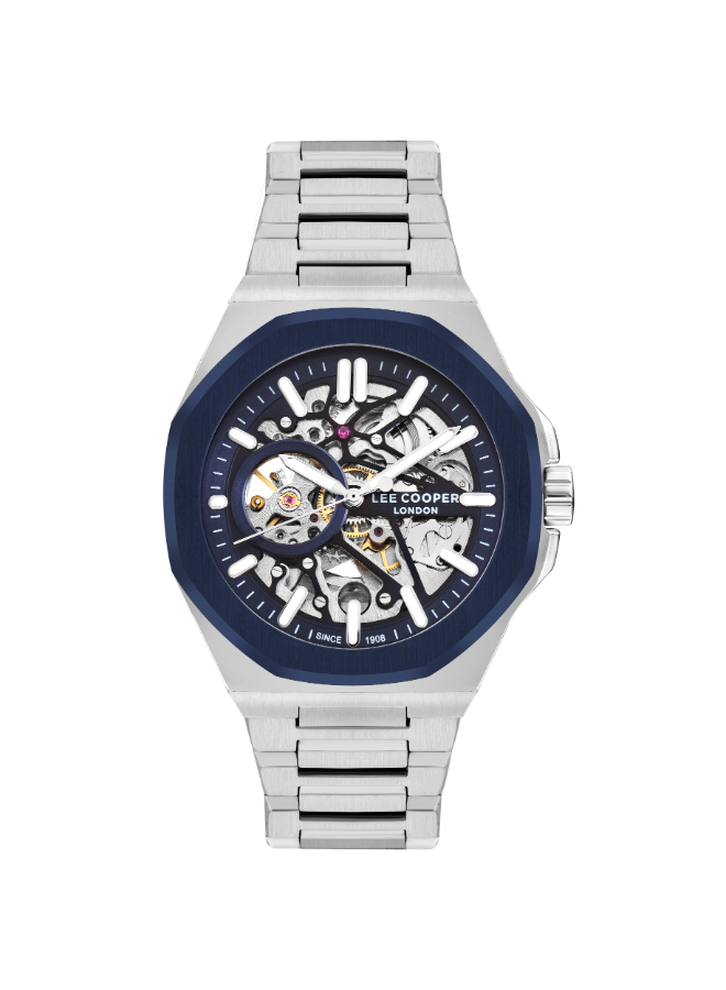 Lee Cooper Automatic Watch LC07977.390 for Men offers a silver dial paired with a visible mechanical movement through an open-heart window. This self-winding watch blends practical function with a modern look, suitable for everyday wear or casual outings. A solid choice for fans of mechanical watches.