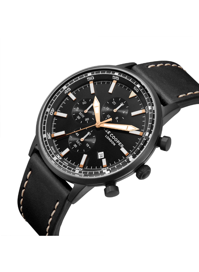 The Lee Cooper LC07943.651 combines a black dial with multi-function subdials, delivering everyday reliability in a bold format.