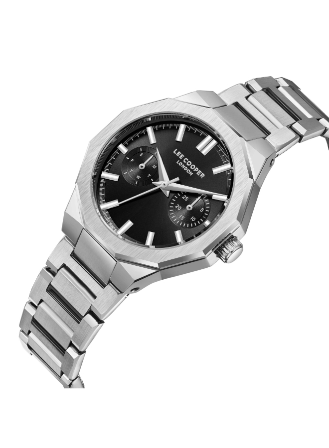 Lee Cooper Multi Function Watch LC08019.350 for Women combines a modern black dial with practical multifunction features, including day, date, and 24-hour indicators. Its versatile design suits both casual and formal occasions, making it a reliable accessory for women who appreciate style and utility.