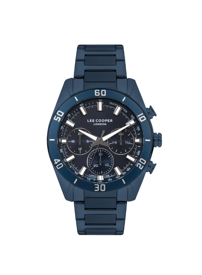 Lee Cooper Multi Function Watch LC07948.990 for Men offers a vibrant blue dial equipped with subdials for day, date, and 24-hour time. The sturdy case and comfortable strap make it ideal for daily wear, blending utility and modern design for versatile style.