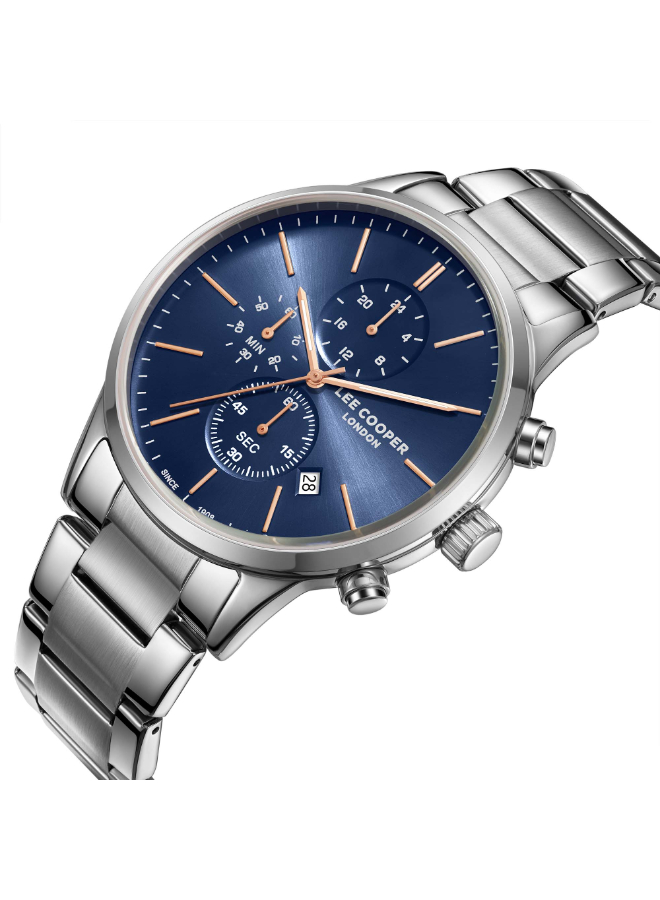 Lee Cooper Multi-Function Watch LC08042.390 for Men combines a vibrant blue dial with practical subdials for date, day, and 24-hour time. With a robust case and comfortable strap, this watch balances functionality and style, making it ideal for everyday wear and a variety of occasions.