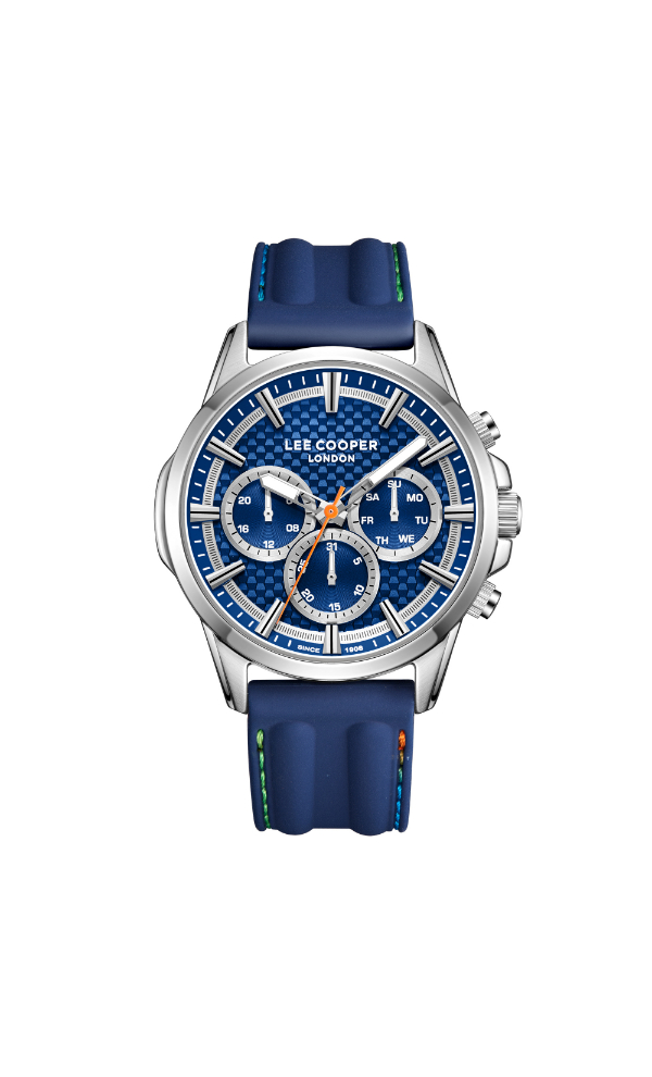 The Lee Cooper LC08048.399 Multi-Function Watch showcases a dark blue dial with multiple sub-dials housed in a sturdy case. Powered by quartz movement, it offers precise timekeeping and useful features. Suitable for everyday wear, this watch pairs well with both casual and formal outfits.