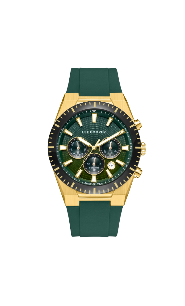 The Lee Cooper LC08088.177 is a men’s multi-function watch featuring a dark green dial with reliable quartz movement.