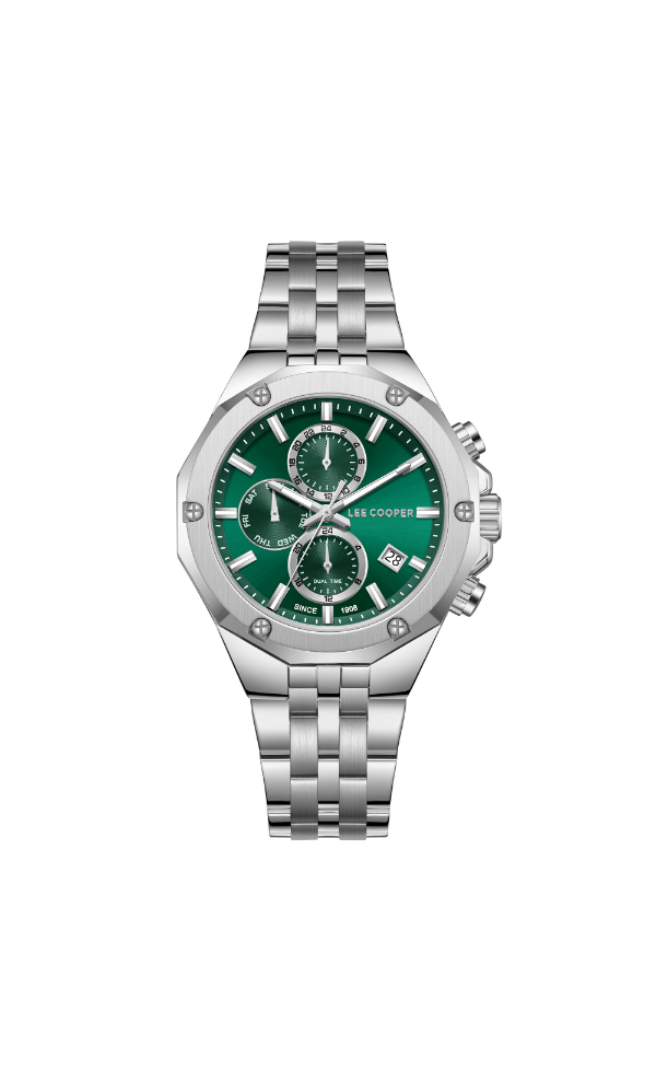 The Lee Cooper LC08104.370 Multi-Function Watch features a dark green dial with multiple sub-dials set in a sturdy case. Powered by quartz movement, it offers accurate timekeeping and practical features. Suitable for everyday wear, this watch pairs well with both casual and formal attire.