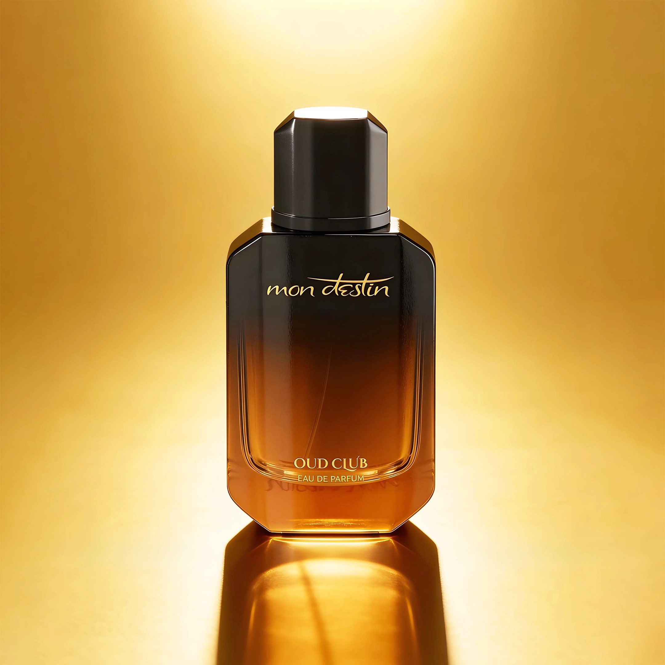 Oud Club Eau de Parfum (EDP) by Mon Destin opens with labdanum. The heart of the scent reveals rose, patchouli, and saffron. The fragrance settles into agarwood, sandalwood, and cedar.