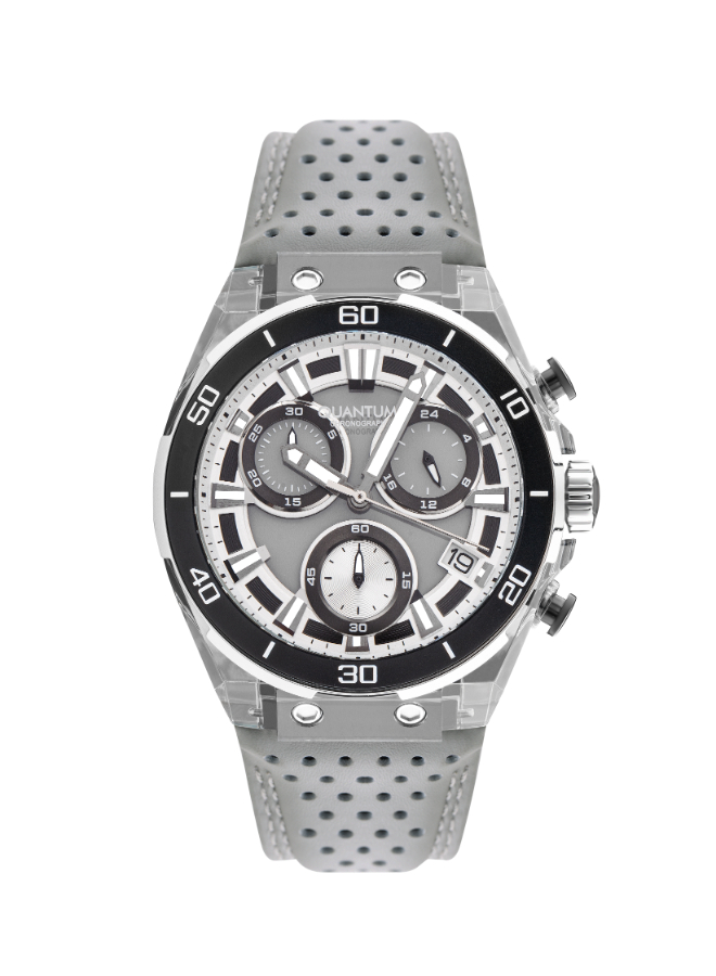 Quantum Chronograph Watch PWG1107.066 showcases a modern grey dial paired with detailed chronograph subdials, encased in durable stainless steel. Designed for men who value style and accuracy, it offers reliable quartz movement and a versatile look suitable for both casual and formal occasions.