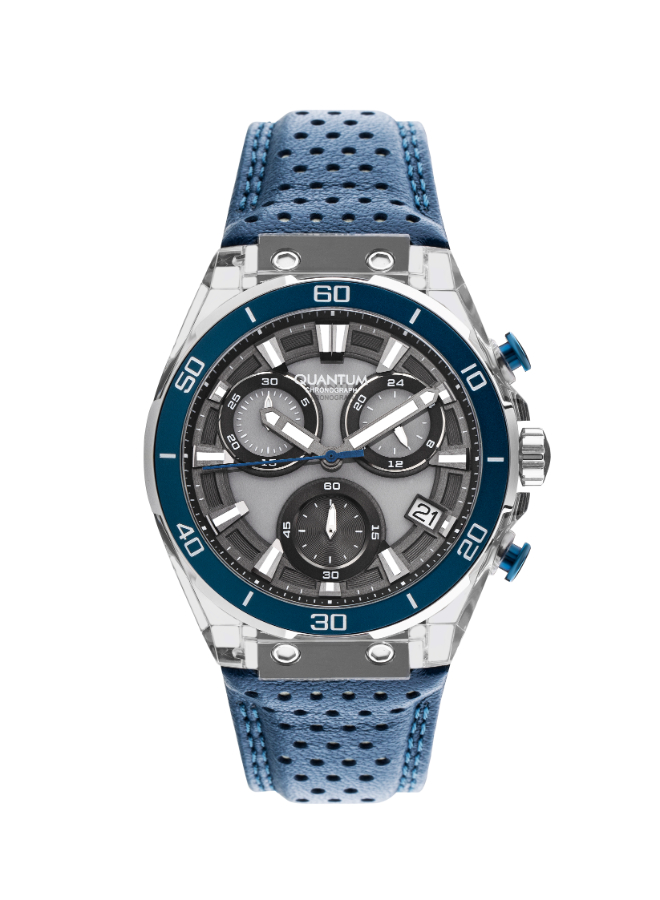 The Quantum PWG1107.369 is a men’s chronograph watch featuring a sleek grey dial with precise multifunction subdials.
