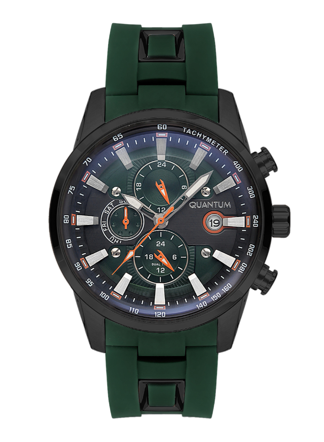 The Quantum ADG678.675 is a refined multi-function men’s watch with a vibrant green dial and versatile performance features.