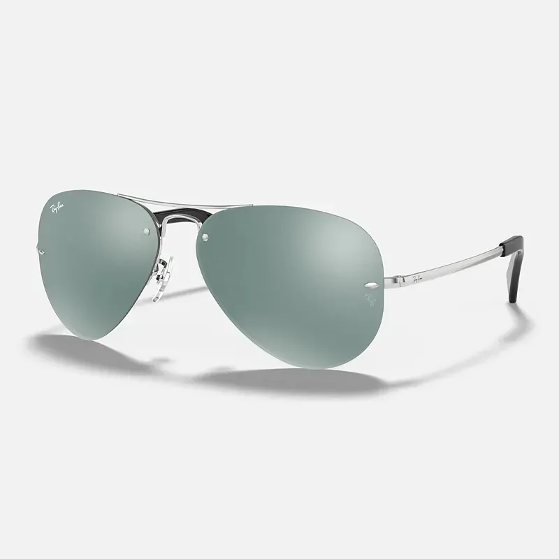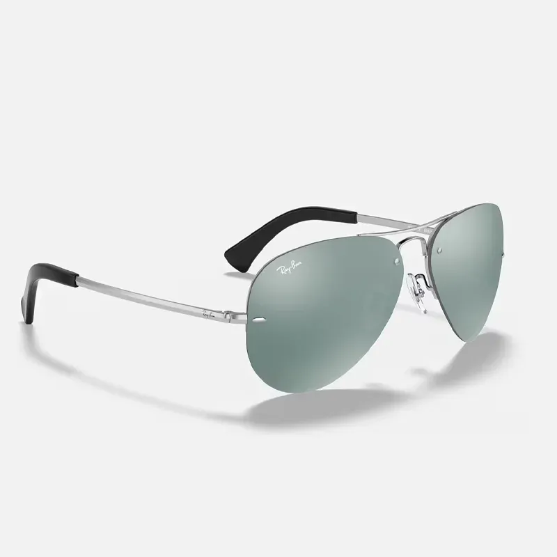 MODEL CODE RB3449 003/30 59-14\nRay-Ban RB3449 iconic Aviator sunglasses are a semi-rimless update of the classic Large Metal Aviator, originated in 1937.\n\nThese lightweight Aviator sunglasses are decorated with darted metal grommets and secure lightweight temples while delivering a sporty aesthetic to some of the coolest sunglasses in history.\n\nThe flat edged metal temples finished with plastic end tips are a distinct characteristic. They come in mirrored and polarized style options.